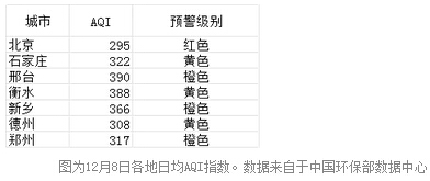 當(dāng)關(guān)注的焦點都聚集于北京灰霾時,在300公里開外,河北省邢臺市,12月8日AQI指數(shù)高峰曾一度緊逼500,爆表在即。衡水、石家莊日均AQI指數(shù)均超過300。在其他城市,諸如河南鄭州、新鄉(xiāng),山東德州等地,日均AQI指數(shù)均突破300。