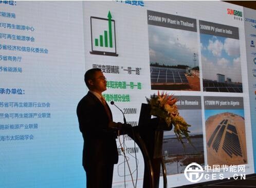 在論壇上,陽光電源市場(chǎng)總監(jiān)張彥虎博士發(fā)表了《借“一帶一路”東風(fēng)加速逆變器走出國(guó)門》的演講。張博士表示:得益于國(guó)家“一帶一路”戰(zhàn)略,全球發(fā)展中國(guó)家可再生能源的需求及中國(guó)高品質(zhì)的光伏產(chǎn)品,中國(guó)光伏在“一帶一路”沿線國(guó)家市場(chǎng)取得重大突破。作為中國(guó)第一大逆變器專業(yè)制造商,陽光電源海外市場(chǎng)更是捷報(bào)頻傳,在亞洲、非洲、歐洲等光伏市場(chǎng)上屢獲大單,比如阿爾及利亞中技賈內(nèi)特的170MW光伏項(xiàng)目,中巴經(jīng)濟(jì)走廊上的巴基斯坦900MW光伏項(xiàng)目等。