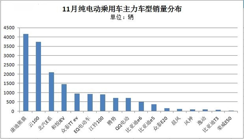 細分車型看,純電動乘用車領(lǐng)域銷量破千輛的車型有:康迪熊貓、眾泰云100、北汽E系車型、和悅IEV車型。康迪熊貓車型繼續(xù)領(lǐng)先,本月銷量雖有小 幅下滑,但始終保持4千輛以上。此外,本月環(huán)比增量表現(xiàn)較突出的當數(shù)眾泰云100和騰勢,兩車型銷量本月分別達3730輛和715輛,增幅為1390輛和 530輛。其中,眾泰云100銷量首破3000輛,與排名第一的康迪熊貓車型相差僅400多輛。而騰勢純電動車型本月出現(xiàn)較大幅度增長,環(huán)比增幅達2.8 倍,不僅創(chuàng)下騰勢月度銷售新紀錄,也吹響了年底沖鋒的號角。。