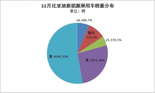 從比亞迪車型銷量分布看,插電式混動乘用車車型依舊是主攻方向,旗下秦和唐的銷量占比亞迪車企總銷量的79%,其中,比亞迪唐銷量達4049輛,占 比53%;秦銷量2021輛,占比26%。而比亞迪純電動車型本月銷量僅1593輛,占比總銷量的21%。純電動車型雖與插電式車型相差較大,但較之上月 677輛的銷量已有大幅提升。比亞迪旗下三款純電動車型銷量本月都有不同幅度增長,其中僅騰勢銷量達715輛,凈增530輛;主攻出租車領(lǐng)域的e5本月銷 量也達379輛,凈增240輛;e6銷量達499輛,凈增146輛。