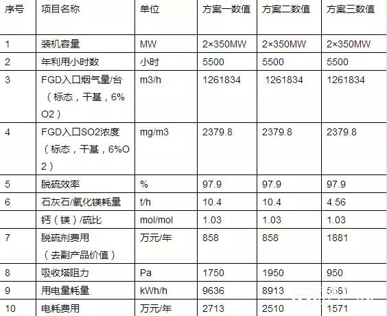 2.5氧化鎂法與石灰石/石膏法脫硫技術經(jīng)濟比較