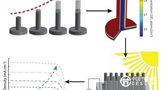 這些電池通常是癟的,但當(dāng)微小的硅柱加載到表面,結(jié)果發(fā)現(xiàn)產(chǎn)生翻倍的電能。制造半導(dǎo)體時,研究人員能夠在每平方厘米填充數(shù)以百萬計的微小硅柱。這些硅柱可以使太陽能光轉(zhuǎn)換成電能。半導(dǎo)體單元是由兩種類型的硅組成:一種是與硼結(jié)合,一種是與磷。兩類硅之間的契合點,稱為PN結(jié),可以促使太陽能電池的效率提高,同時也使正負(fù)電荷分離。