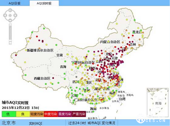 12月22日15時(shí)全國(guó)城市AQI實(shí)時(shí)報(bào)