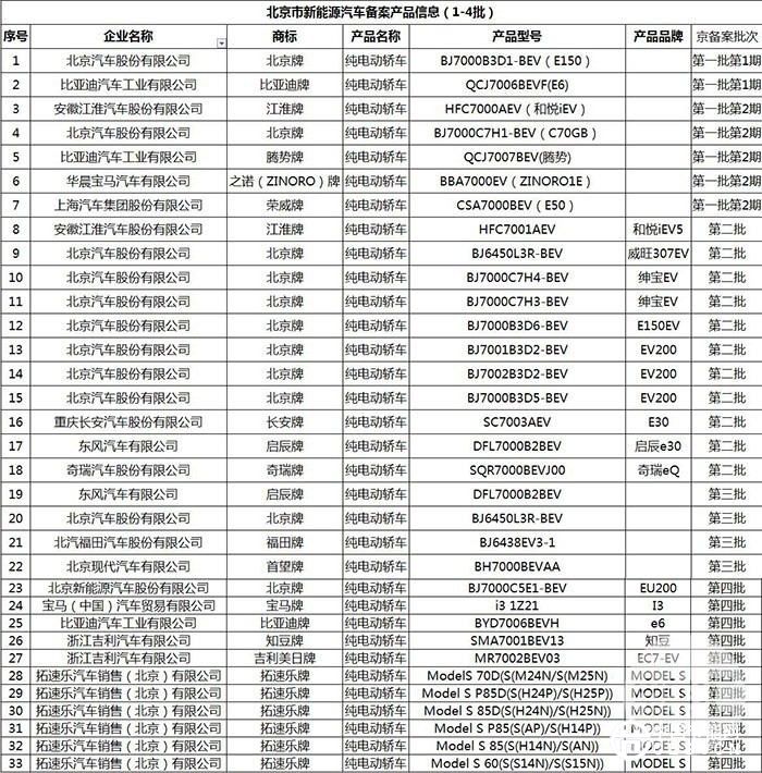 截止小編發(fā)稿,根據(jù)公開(kāi)資料,北京目前共頒布四批“示范應(yīng)用新能源小客車(chē)生產(chǎn)企業(yè)及產(chǎn)品備案信息”。進(jìn)入上述備案的車(chē)型,均可在京享受牌照、補(bǔ)貼等優(yōu)惠政策。