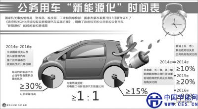 核心提示:據(jù)新華社電國家機關(guān)事務(wù)管理局、財政部、科技部、工業(yè)和信息化部、國家發(fā)展改革委昨天聯(lián)合公布了《政府機關(guān)及公共機構(gòu)購買新能源汽車實施方案》,明確了政府機關(guān)和公共機構(gòu)公務(wù)用車“新能源化”的時間表和路線圖。