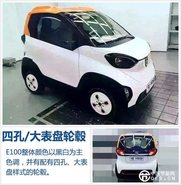 E100采用雙門設(shè)計,整體車身采用珍珠白色調(diào),但黑色的車窗、車燈以及黑色的側(cè)面翼子板,都讓新車顯得十分可愛,猶如熊貓。新車側(cè)面一條較為明顯的腰線由前車燈下沿一直向后延續(xù)到后車燈上沿,使E100雖然車身小巧。此外這組諜照中,E100配有個性鮮明的四孔、大表盤樣式的輪轂設(shè)計,白輪轂黑車胎,與整體車身十分和諧。尾燈部分采用前大燈組相同設(shè)計風(fēng)格,黑白配色也與整體車身交相呼應(yīng)。