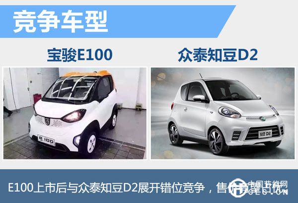 目前國內(nèi)小型純電動車市場中,五菱這款電動車并無直接競爭對手,僅有眾泰知豆D2與寶駿E100形成錯位競爭關(guān)系。知豆D2搭載了由波士頓電池提供的三元鋰電池,續(xù)航里程由D1的160km增加到了210km(45km/h勻速行駛的工況下),相比寶駿E100的100km續(xù)航里程有著一定的優(yōu)勢。但寶駿E100定位要更低于知豆D2,售價有望比知豆更具優(yōu)勢。
