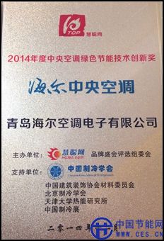 12月18日,2014年度第八屆中國(guó)空調(diào)冷凍新風(fēng)行業(yè)品牌盛會(huì)在靖江落下帷幕。本次盛會(huì)以“綠色世界,共享和諧”為主題,空調(diào)制冷行業(yè)資深專(zhuān)家學(xué)者、優(yōu)秀企業(yè)家、合作單位及媒體受邀參加。在年度盛典的頒獎(jiǎng)活動(dòng)中,海爾中央空調(diào)憑借其在節(jié)能領(lǐng)域的突出貢獻(xiàn),榮獲“綠色節(jié)能技術(shù)創(chuàng)新獎(jiǎng)”。