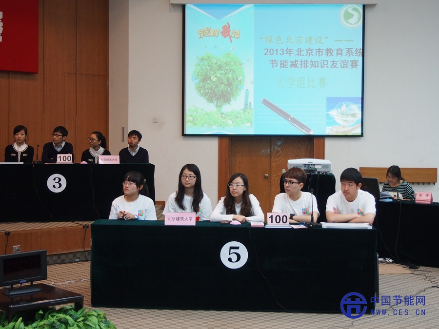 “綠色北京建設(shè)——2013年北京市教育系統(tǒng)節(jié)能減排知識友誼賽賽”是北京市教育系統(tǒng)落實《北京市中長期教育改革和發(fā)展規(guī)劃綱要(2010-2020)》、《北京市節(jié)約型高等學(xué)校 指導(dǎo)意見》,結(jié)合全國節(jié)能周的宣傳和教育工作,市教委、市發(fā)展和改革委共同主辦面向北京市教育系統(tǒng)的節(jié)能減排競賽活動。共分為節(jié)能減排創(chuàng)新成果征集活動和節(jié)能減排知識團體對抗賽兩大項三小項內(nèi)容。10月16日在北京師范大學(xué)舉辦的節(jié)能減排知識團體對抗賽共分為高校組、區(qū)縣組和家庭組三類,分為闖關(guān)賽和總決賽兩個階段。在闖關(guān)賽階段,我校代表隊和北京師范大學(xué)、首都師范大學(xué)、北京信息科技大學(xué)、首都經(jīng)濟貿(mào)易大學(xué)分在了一組,經(jīng)過非常問答、非常搶答和加速搶答三個環(huán)節(jié),最終我校獲得北京市教育系統(tǒng)節(jié)能減排知識競賽三等獎。