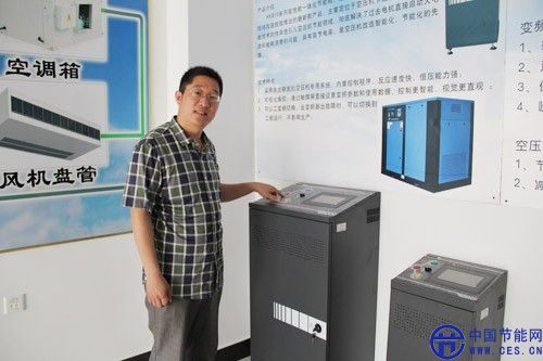 丁中年向記者介紹公司里銷售的產(chǎn)品空壓機(jī)節(jié)能柜。