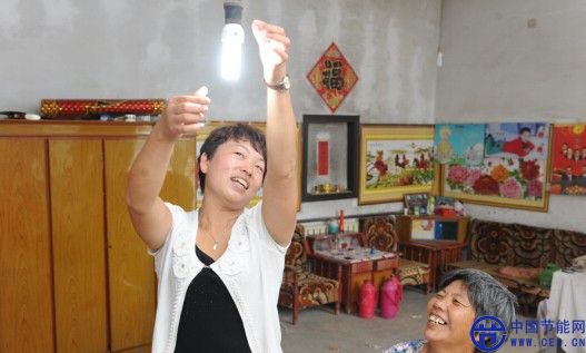 7月24日,隆堯縣雙碑鄉(xiāng)木花村村民耿貴芬(左一)花53元錢,從村委會領取了10只不同功率的高效節(jié)能燈。