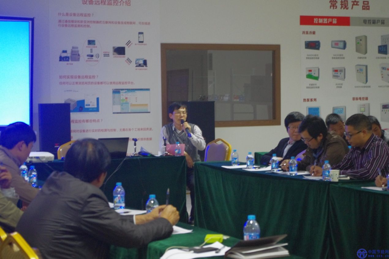 下午3點,由蘇州新亞副總經(jīng)理李鳳進先生主持的“冷凍冷藏技術研討會”在多功能會議室 準時舉行。由徐衛(wèi)國先生主持的“華東區(qū)熱泵技術研討會”在輔助會議廳同期舉行。蘇州新亞董事長聞建中先生在冷凍冷藏技術研討會上做開場介紹并發(fā)表“螺桿機 的控制與應用”演講。煙臺奧威孫松先生(工程師)就“冷凍冷藏氟制冷系統(tǒng)和設備易忽視的問題”與在座各位專家進行詳盡分享。新疆藍洋馬興國先生(總經(jīng)理) 和河南新三花秦躍生先生(總經(jīng)理)分別就遠程監(jiān)控在新疆與河南工程的推廣與應用分享心得。最后,聞總以“遠程監(jiān)控的合作模式”為題,與參會嘉賓達成“合作 才能共贏”的共識。蘇州新亞愿意為大家做好最堅實最可靠的后盾支持。