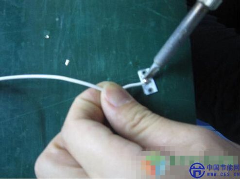 端先裝入,較長(zhǎng)的白線(xiàn)穿到鋁管另外一邊,電源順著放入鋁管中。