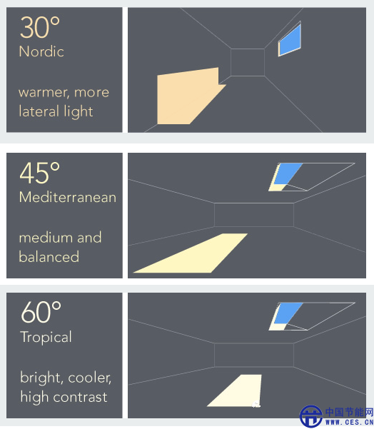 這套系統(tǒng)還允許各種不同模式的陽光調(diào)節(jié),比如說光線的冷暖,可以根據(jù)自的喜好選擇不同地區(qū)的陽光。包括60度的熱帶地區(qū)明媚照明效果,45度地中海地區(qū)中性的照明,以及北歐為代表的30度暖色照明環(huán)境。