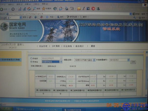 我公司與中國農(nóng)大電力研究所共同開發(fā)的10KV線路無功補償裝置在線監(jiān)測系統(tǒng)升級了!多年來我公司致力于電力產(chǎn)品的研發(fā),特別是中低壓無功補償裝置,與中國農(nóng)大的友好合作已有10余年的歷史,目前農(nóng)大研究的國家十一五科技支撐計劃課題《農(nóng)村電網(wǎng)高可靠性供電及供用電節(jié)電關(guān)鍵技術(shù)研究》,與我紫金電力公司10KV線路無功補償裝置產(chǎn)品相結(jié)合,為完成此項目,大家共同努力,灤南縣電力公司也參與了研究。該技術(shù)為電力公司智能化、自動化管理帶來了質(zhì)的改變,真正做到了經(jīng)濟、實用、智能、節(jié)能!下面是利用GPRS無線網(wǎng)絡(luò)(每月僅5元)截取的適時數(shù)據(jù)和日報表: