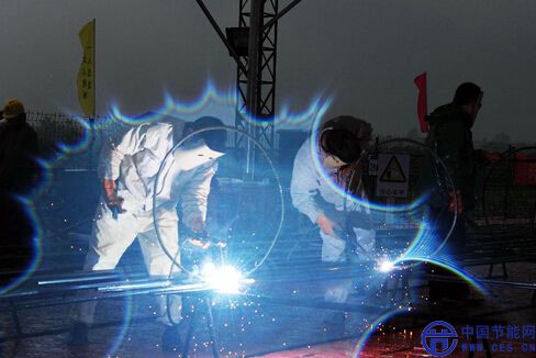 在安徽省池州市貴池區(qū)烏沙鎮(zhèn),安徽送變電工程公司的施工人員在進(jìn)行鋼筋籠焊接施工。