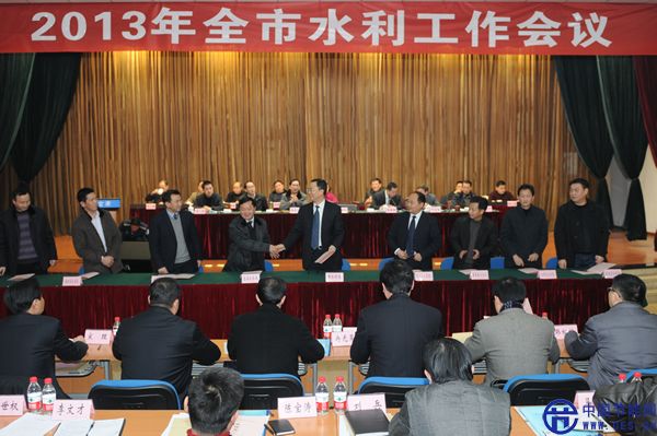 局領(lǐng)導(dǎo)冀春樓、韓正江、吳盛海、祝良華、楊盛華、王煜、王長(zhǎng)惠、張光榮、陳本利、謝寶文出席會(huì)議。農(nóng)發(fā)行市分行副行長(zhǎng)張孝成、重慶建工集團(tuán)總經(jīng)理陳曉、市水務(wù)資產(chǎn)經(jīng)營(yíng)有限公司副總裁何勝,以及市發(fā)展改革委、市財(cái)政局、市水投集團(tuán)有關(guān)負(fù)責(zé)同志應(yīng)邀出席了會(huì)議。冀春樓主持會(huì)議,韓正江宣讀2012年度“禹王杯”水利綜合目標(biāo)考核獲獎(jiǎng)單位和全國(guó)農(nóng)田水利基本建設(shè)先進(jìn)單位表彰文件,吳盛海通報(bào)2013年度“禹王杯”水利綜合目標(biāo)考核有關(guān)情況。