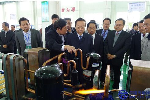 全國(guó)政協(xié)經(jīng)濟(jì)委員會(huì)副主任李毅中等領(lǐng)導(dǎo)視察江蘇朗肯空氣空調(diào)生產(chǎn)線