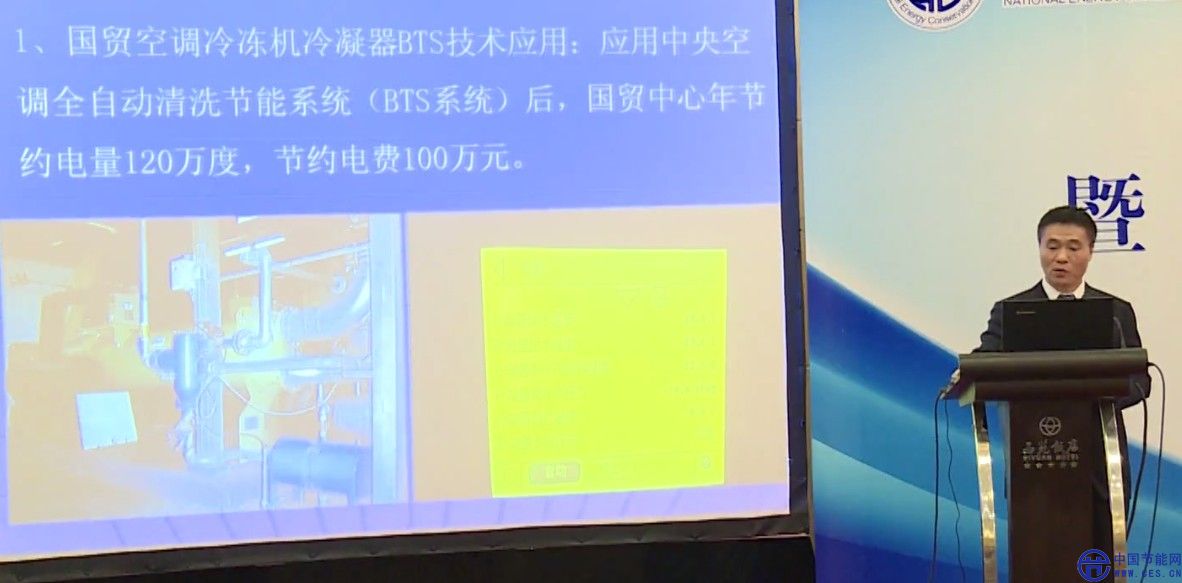 國貿(mào)最近做了一個(gè)節(jié)能措施,也有剛才陳總介紹的BTS小球這個(gè)技術(shù),從區(qū)域我們請了一個(gè)能源公司做一個(gè)能源監(jiān)測,我們主要的耗電可以看到,就是在照明、空調(diào)還有綜合服務(wù)、采暖大型設(shè)備上,都是耗電的一個(gè)大部。我們在采用了一些節(jié)能技術(shù)應(yīng)用上主要針對這些方面的,剛才陳總介紹的BTS小球技術(shù),國貿(mào)是從2003年開始在兩臺機(jī)組上安裝小球,安裝完了以后,大家可以看一下運(yùn)行的指標(biāo),主要它清洗空調(diào)的冷凝器,咱們知道一般空調(diào)要運(yùn)行冷凝器,用一段時(shí)間以后,有冷卻塔,它是對大氣開放,經(jīng)常會有灰塵,帶到空調(diào)主機(jī)系統(tǒng)了,影響冷凝器的換熱效果,一般沒安裝這個(gè)小球,我們原來每年都需要開蓋清洗,加化學(xué)處理。加這小球以后,最近幾年對比,不裝小球系統(tǒng),我們原來搞得能到三以上,一般都是在2左右,1.7、1.8左右。效率很低,北京市節(jié)能環(huán)保中心,做完這個(gè)以后,經(jīng)過測試,確實(shí)節(jié)能效果很好。我們測算完了以后,裝完了一個(gè),這項(xiàng)技術(shù)使得國貿(mào)中心每年的節(jié)電大約120萬度,節(jié)電大概一百萬人民幣。后來從2003年嘗試按了之后,效果很好,陸陸續(xù)續(xù)在國貿(mào)二期安裝了十多套,現(xiàn)在國貿(mào)的大型冷機(jī)組基本上都安裝了BTS技術(shù)。