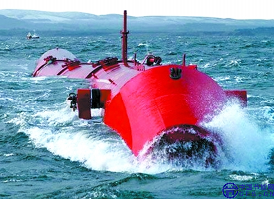 波浪發(fā)電的裝置主要有漂浮式和固定式兩種。舉例來說,一種漂浮在海上名為Pelamis的波浪能發(fā)電裝置,酷似一條海蛇,其工作原理是將金屬海蛇的嘴垂直于海浪方向,其關(guān)節(jié)依靠海浪推動相互鉸接的金屬圓筒,像海蛇一樣隨著海浪上下起伏;鉸接處的上下運(yùn)動與側(cè)向運(yùn)動的勢能將推動金屬圓筒內(nèi)的液壓活塞作往復(fù)運(yùn)動,從而使高壓油驅(qū)動發(fā)電機(jī)發(fā)電。