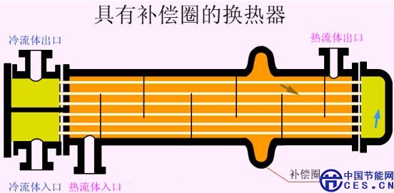 當(dāng)流體為高溫?fù)Q熱時(shí),由于殼體與管束因溫度相差太大,引起不同的熱膨脹率,補(bǔ)償圈就是為了消除這種熱應(yīng)力。