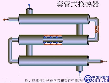 冷、熱流體分別在內(nèi)管和套管中流動(dòng)并換熱。