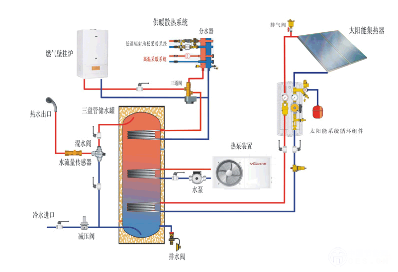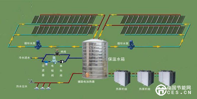 德國布朗茲維克科技大學(xué)的熱能動(dòng)力學(xué)院基于復(fù)合CO2熱泵太陽能供熱系統(tǒng),建立了一種新型的供熱系統(tǒng)。去年六月份的德國環(huán)保周期間展出了這一系統(tǒng)的原型 (與此同時(shí)也展出了卡車和公交車的CO2空調(diào)系統(tǒng))。熱泵的供熱能力大約是2 kW,同時(shí)布朗茲維克科技大學(xué)聲稱這一系統(tǒng)比傳統(tǒng)的利用燃燒供熱的方式能效高。由于建筑物供熱只耗費(fèi)很少一部分能量,因此熱水供應(yīng)系統(tǒng)的能量需求問題受到 更多關(guān)注,尤其是對(duì)于高絕熱標(biāo)準(zhǔn)的房屋而言。這也使得將熱泵的工作溫度提高到55-60°C,即令CO2制冷劑發(fā)揮最高能效成為可能。