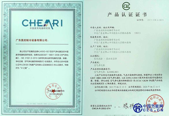美的空氣凈化器B21獲A+認(rèn)證
