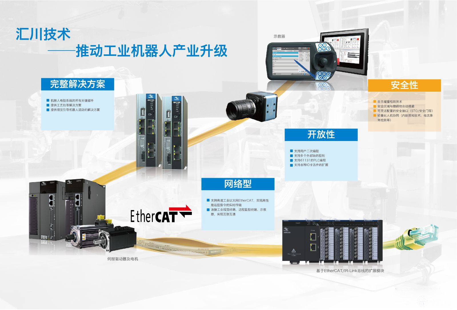 秉承著對(duì)高技術(shù)指標(biāo)及高安全規(guī)格的一貫追求,匯川技術(shù)致力于提供真正意義上高度安全且全面適用的機(jī)器人核心部件及綜合解決方案?,F(xiàn)已推出高性能、工業(yè)以太網(wǎng)接口的IMC100系列工業(yè)機(jī)器人控制器和伺服產(chǎn)品,服務(wù)于工業(yè)機(jī)器人整機(jī)制造商,同時(shí)為客戶提供工藝和應(yīng)用方案的定制化,積極推動(dòng)工業(yè)機(jī)器人產(chǎn)業(yè)升級(jí)。