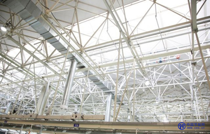 即便走出新總裝車間,也能感覺到無處不在的環(huán)保設計理念。車間物流卸貨區(qū)采用了站臺式直接對口卸貨的方式,物流卡車的尾氣不會排入室內,而且,規(guī)劃合理的“站臺”設計使物流車輛的靠泊更有序更高效,進一步減少了二氧化碳排放。