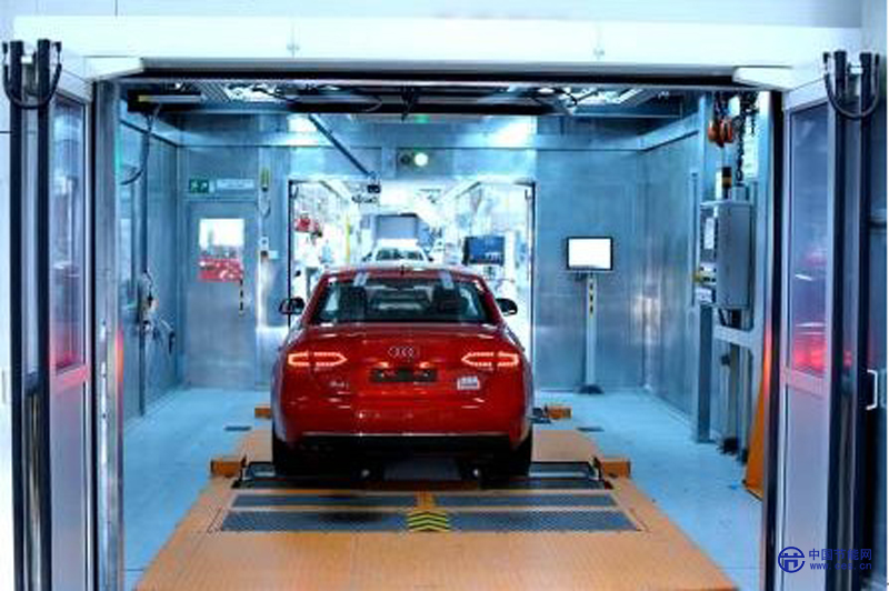 “動態(tài)高速轉轂試驗臺”可以將車輛加速到最高180公里的時速,在不同速度狀態(tài)下進行制動力分配、ABS、最大制動力、發(fā)動機及換檔性能、ESP等多方面的檢測,這些功能直接關系到車輛行駛時的安全與穩(wěn)定。此外,通過天線系統(tǒng)發(fā)射標準的信號,“動態(tài)高速轉轂試驗臺”還能檢測收音機、手機電視、GPS等信息娛樂系統(tǒng)在高速行駛狀態(tài)下的性能。