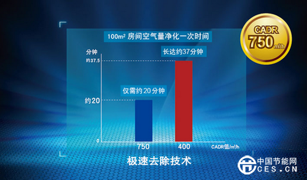 回到我們之前所說的內(nèi)容,看看為什么AO史密斯空氣凈化器(KJ-750A01)是一款專為中國市場定制的產(chǎn)品。CADR(潔凈空氣輸出量)是空氣凈化器的核心指標(biāo),CADR越大意味著空氣凈化器凈化速度越快(CADR計算方法由凈化速率來決定),凈化固定面積戶型的時間越短。在目前大部分空氣凈化器提供300-500立方/小時的CADR,AO史密斯空氣凈化器(KJ-750A01)其潔凈空氣輸出量CADR達到了750立方米/小時。