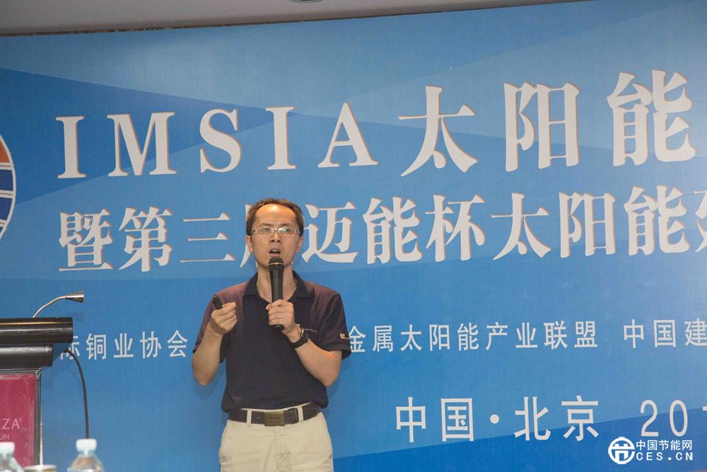 IMISA國際金屬太陽能產(chǎn)業(yè)聯(lián)盟秘書長黃俊鵬介紹了今年來圍繞邁能杯大賽而進行了相關(guān)研究性成果,如太陽能熱水工程診斷報告和太陽能采暖現(xiàn)狀及趨勢。黃俊鵬在診斷報告中發(fā)言中指出,我們首先要正確認(rèn)識太陽能熱水在建筑中的價值。由于太陽能受天氣影響較大,尤其是在北方的冬天,設(shè)計、運營任何一環(huán)節(jié)出現(xiàn)問題,都會導(dǎo)致冬天不熱,耗電量大的問題,很難讓太陽能做到24小時熱水。IMSIA倡導(dǎo)整個行業(yè)改變理念,1)太陽能不是萬能的,但混合太陽能可以是萬能的。就是說太陽能必須增加輔助熱源,這種輔助熱源可以是電、燃氣壁掛爐、燃氣熱水器或者空氣源熱泵?;旌夏茉聪到y(tǒng),多能互補才能確保24小時熱水;2)避免提免費熱水系統(tǒng),增加計量系統(tǒng),在多能源系統(tǒng)中詳細計量太陽能的貢獻,將太陽能系統(tǒng)定位成節(jié)能系統(tǒng),而不是產(chǎn)能系統(tǒng)。通過實地調(diào)研案例針對性詳盡分析的基礎(chǔ)上,指出了目前行業(yè)中存在的問題,并指出行業(yè)要重視規(guī)劃設(shè)計、重視驗收移交、加強運營培訓(xùn)。他還表示,太陽能采暖一直是備受關(guān)注和爭議的行業(yè)熱點話題之一。此次報告指出,采暖和空調(diào)在建筑能耗中占有較大比例,隨著我國城鎮(zhèn)化建設(shè)的發(fā)展以及節(jié)能減排政策的實施,綠色建筑、低碳建筑、新農(nóng)村示范工程建設(shè)越來越多,供熱、采暖中對可再生能源的應(yīng)用也越來越廣泛。隨著太陽能熱利用技術(shù)的不斷進步,一些企業(yè)的太陽能采暖技術(shù)也慢慢開始往跨季節(jié)蓄熱方面發(fā)展,實現(xiàn)冬季供暖非采暖季節(jié)供熱制冷。正確看待太陽能采暖,而不是為追求太陽能采暖盲目擴大太陽能集熱器安裝面積,導(dǎo)致夏季過熱等問題出席。IMSIA報告認(rèn)為,因地制宜、科學(xué)合理的利用太陽能,太陽能采暖的設(shè)計方案要與市場結(jié)合,提高太陽能、地?zé)崮埽镔|(zhì)能等多種可再生能源在建筑中的綜合利用技術(shù)水平,包括優(yōu)化設(shè)計、智能化控制、蓄能技術(shù)等,發(fā)揮不同能源種類的各自優(yōu)勢,提供多能互補的優(yōu)選技術(shù)解決方案。