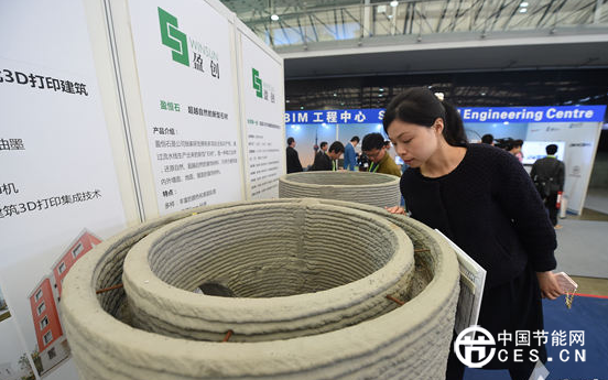 在本次展會展出的3D打印墻面吸引了大量觀眾,墻面里有窗框、甚至還可預設水電管道。據(jù)現(xiàn)場工作人員介紹,這是采用了改良水泥,并且加入了增強性的玻璃纖維和環(huán)保添加劑,以適應3D打印機。此外,一些例如混凝土、紅磚等建筑垃圾,經(jīng)過粉碎后也可以成為3D打印建筑的原材料。