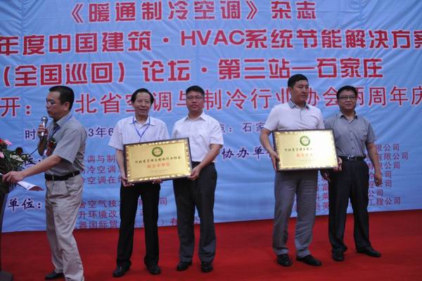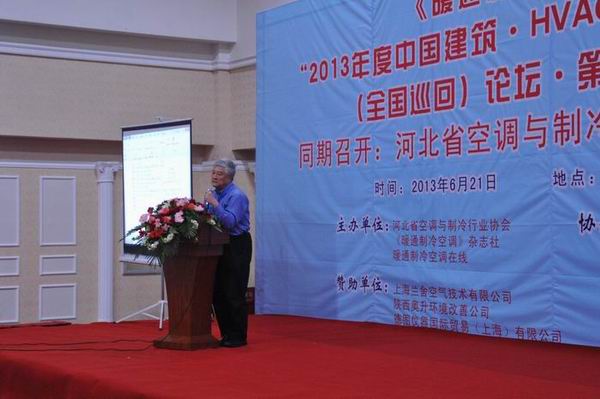 2013年6月21日至22日,河北省空調(diào)與制冷行業(yè)協(xié)會(huì)兩周年慶典暨“2013年度中國建筑·暖通空調(diào)系統(tǒng)節(jié)能解決方案(全國巡回)論壇”在石家莊市凱旋金悅大酒店召開,大會(huì)安排年會(huì)、論壇、展覽、參觀四項(xiàng)內(nèi)容。出席會(huì)議的有河北省第九屆人大常委會(huì)副主任,河北省書法家協(xié)會(huì)名譽(yù)主席龔煥文、河北省第十屆人大常委會(huì)副主任韓葆珍、河北省工經(jīng)聯(lián)副秘書長(zhǎng)蘇輝、中國建筑學(xué)會(huì)暖通空調(diào)分會(huì)名譽(yù)理事長(zhǎng)吳元煒、中國建筑學(xué)會(huì)暖通空調(diào)分會(huì)副理事長(zhǎng)吳德繩、中國建筑金屬結(jié)構(gòu)協(xié)會(huì)地面輻射供暖委員會(huì)專家組組長(zhǎng)鄧有源、河北省制冷學(xué)會(huì)理事長(zhǎng)方國昌、山西制冷協(xié)會(huì)會(huì)長(zhǎng)來可經(jīng)、湖北省空調(diào)制冷協(xié)會(huì)秘書長(zhǎng)張定國、中國設(shè)備管理協(xié)會(huì)全國空調(diào)系統(tǒng)檢測(cè)技術(shù)服務(wù)中心副主任席夫建、中冷協(xié)空工委陜西工作站站長(zhǎng)王峰,以及來自全國各地的暖通空調(diào)設(shè)計(jì)、科研院所、大專院校、媒體記者及業(yè)內(nèi)生產(chǎn)經(jīng)營企業(yè)代表和社會(huì)各界人士近2百人