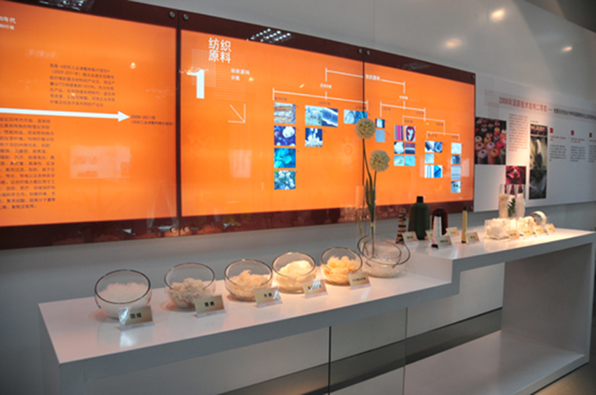 “泱泱華夏,紡織文明;楚織漢繡,技藝精湛;科技創(chuàng)新,任重道遠(yuǎn);紡織強國,使命在肩。” 武漢紡織大學(xué)紡織科技館緊緊圍繞紡織產(chǎn)業(yè)鏈,從紡織原料、紡紗技術(shù)、技術(shù)紡織品、染整技術(shù)、服裝設(shè)計與工程、紡織裝備和紡織經(jīng)濟(jì)與管理等7個方面,分七大展區(qū)全面展示了紡織產(chǎn)業(yè)發(fā)展的重點環(huán)節(jié)。其中,每一展區(qū)都以一個精心設(shè)計的主題櫥窗,對展示內(nèi)容進(jìn)行非常形象的概述。紡織科技館既是武漢紡織大學(xué)堅持特色發(fā)展、堅持科技創(chuàng)新、堅持產(chǎn)學(xué)研結(jié)合、建設(shè)特色鮮明現(xiàn)代紡織大學(xué)的重要標(biāo)志;也是我國以先進(jìn)的技術(shù)推進(jìn)紡織工業(yè)發(fā)展的一個縮影,彰顯了我國在紡織領(lǐng)域的創(chuàng)新技術(shù)、創(chuàng)新工藝、創(chuàng)新設(shè)計和創(chuàng)新理念。