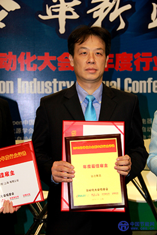 臺(tái)達(dá)DVS 工業(yè)以太網(wǎng)交換機(jī)和中型模塊化可編程控制器AH500分別獲得“創(chuàng)新產(chǎn)品獎(jiǎng)”和“最具競(jìng)爭(zhēng)力獎(jiǎng)”,中達(dá)電通工業(yè)控制系統(tǒng)產(chǎn)品開發(fā)處總監(jiān)張紹坤代表領(lǐng)獎(jiǎng)