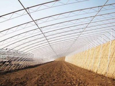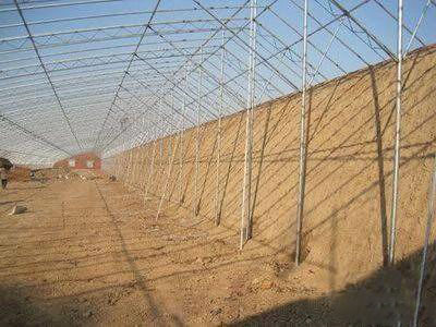 降低后墻高度,延長(zhǎng)后屋面,減少散熱面積目前,各地已建的溫室大多數(shù)為短后坡結(jié)構(gòu),后坡仰角小,采光性能不好,頂部散熱面積也大,進(jìn)行深冬茬生產(chǎn)效果不好。溫室主要通過(guò)采光屋面的薄膜向外散射熱能,通過(guò)延長(zhǎng)后屋面(即后屋面投影長(zhǎng)),可以減少棚膜覆蓋面積,達(dá)到減少散熱面積,提高保溫性能的效果。一般,后屋面長(zhǎng)度由普通的1.5m左右,延長(zhǎng)至2.4m,可減少散熱面積10%左右。