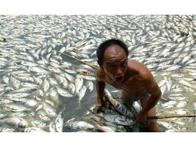 在湖北省武漢的一個養(yǎng)魚廠,老板忙著清理湖里的死魚,深惡痛絕卻又無能為力,眼睜睜的看著的汗水白流。