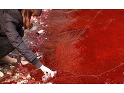 一名電視臺記者從劍河中進行取樣,驚心動魄的紅色看得讓人揪心,水里的生物該如何生存下去?