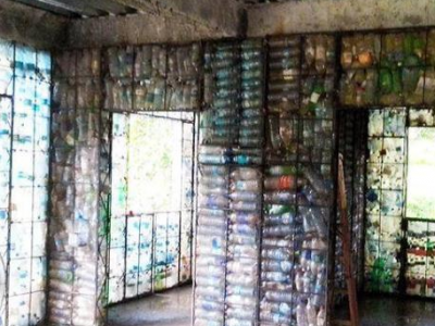 建造一個100平方公尺的房子,約需要1.4萬個塑料瓶。