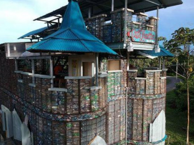 而那就是…用來建房子!他在巴拿馬開始打造一個塑料瓶村,目的是盡量減少塑料廢物,并透過把塑料垃圾加入建筑中,讓它得到了全新的用途。