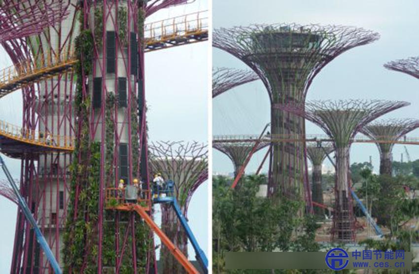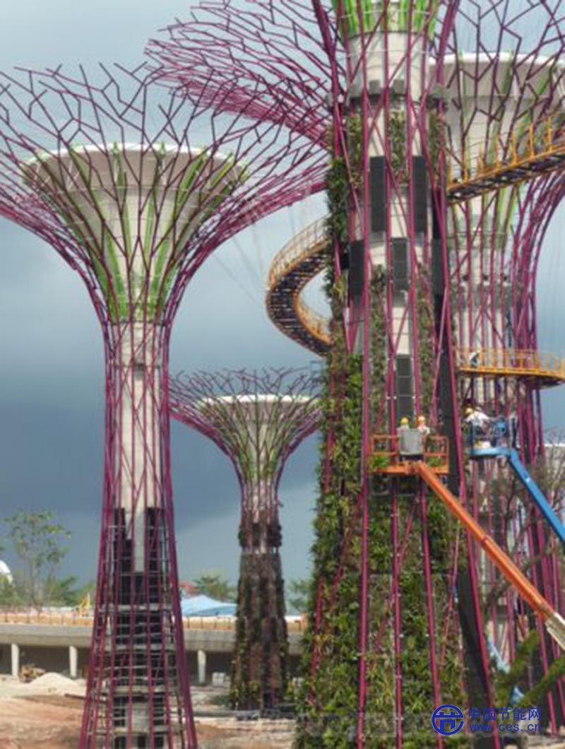 “超級樹”有混凝土的"樹心"、鋼制的"樹干"、種植花草的板材以及頂棚等。“超級樹”將種植有200多種來自于世界各地的熱帶植物,總數(shù)達(dá)到16.29萬棵。“超級樹”有暖色調(diào),也有冷色調(diào),植物的選擇則根據(jù)它們的耐受力、對土壤的需求以及在新加坡雨林當(dāng)中的稀有性來評判。