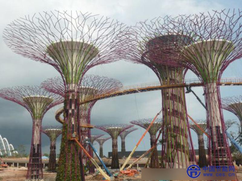 由Wilkinson Eyre事務(wù)所、Grant Associates景觀事務(wù)所、Atelier 10結(jié)構(gòu)工程公司等設(shè)計的“超級樹”(Super Tree)工程位于新加坡碼頭灣的南部,其所在的海灣花園將成為新加坡最吸引人的景點之一。盡管工程尚未結(jié)束,但“超級樹”工程已經(jīng)成為新加坡天際線上的一部分。18棵“大樹”當(dāng)中,11棵采用了環(huán)境可持續(xù)性的材料。該工程將在明年6月正式與公眾見面。