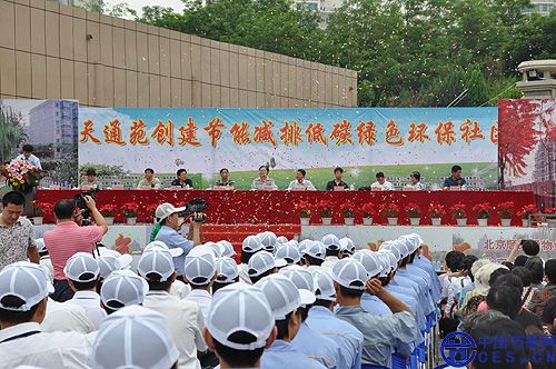 今天上午,北京天通苑創(chuàng)建節(jié)能減排低碳綠色環(huán)保社區(qū)啟動(dòng)儀式在天通藝園廣場(chǎng)舉行。天通苑有亞洲第一大生活居住社區(qū)之稱,現(xiàn)有居民20余萬(wàn)。啟動(dòng)儀式上宣讀了活動(dòng)倡議書(shū)以及共青團(tuán)北京市委副書(shū)記、北京市首任節(jié)能環(huán)保宣傳員鄧亞萍的賀信。倡議書(shū)說(shuō),堅(jiān)持科學(xué)發(fā)展觀,落實(shí)減排目標(biāo),關(guān)系群眾切身利益,功在當(dāng)代,福及子孫。倡議書(shū)提出天通苑全體居民要義不容辭,行動(dòng)起來(lái),從現(xiàn)在做起,從自我做起;從點(diǎn)滴入手,落實(shí)日常,堅(jiān)持長(zhǎng)久;學(xué)習(xí)普及環(huán)保知識(shí)和方法,推廣使用節(jié)能新技術(shù)、新產(chǎn)品;低碳減排,綠色生活;養(yǎng)成“健康生活、合理消費(fèi)”的生活觀念。