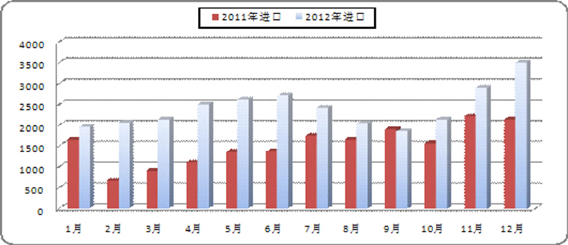 全年分時(shí)段來(lái)看,一、三季度我國(guó)進(jìn)口量相對(duì)較低,二、四季度進(jìn)口量較高,2012年一季度月均煤炭進(jìn)口量2057萬(wàn)噸,二季度回升至2604萬(wàn)噸,三季度再度降至2111萬(wàn)噸,四季度年末3個(gè)月進(jìn)口量環(huán)比遞增而且屢次刷新進(jìn)口量歷史新高,月均煤炭進(jìn)口量更是飆升至2844萬(wàn)噸。一季度進(jìn)口量較低,一是受節(jié)假日因素影響,二是部分貿(mào)易商此時(shí)尚處于觀望狀態(tài);由于一季度國(guó)際煤價(jià)不斷走低,而此時(shí)國(guó)內(nèi)市場(chǎng)相對(duì)較好,煤炭進(jìn)口訂單快速增加,導(dǎo)致二季度進(jìn)口量迅速回升;受6月份國(guó)內(nèi)煤價(jià)大幅走低影響,部分貿(mào)易商暫停了部分進(jìn)口業(yè)務(wù),三季度煤炭進(jìn)口應(yīng)聲回落;由于部分貿(mào)易商看好冬季用煤高峰期的市場(chǎng)需求預(yù)期,四季度進(jìn)口訂單再度增加。