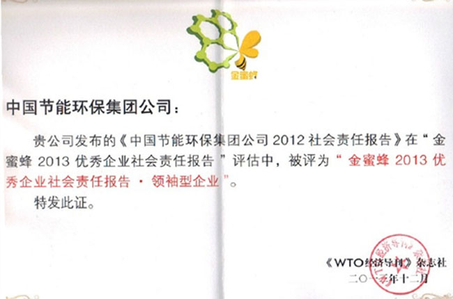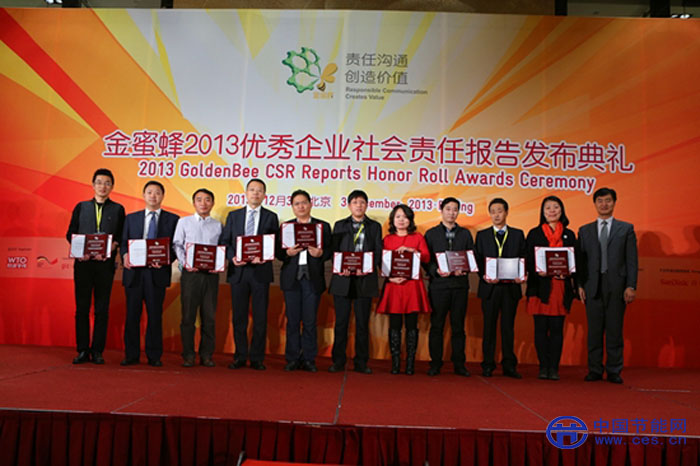 12月3日,主題為“責任溝通•創(chuàng)造價值”的第六屆中國企業(yè)社會責任報告國際研討會暨金蜜蜂2013優(yōu)秀社會責任報告頒獎典禮在北京舉行?!?012中國節(jié)能社會責任報告》從中國大陸發(fā)布的1525份報告中脫穎而出,一舉摘得金蜜蜂優(yōu)秀企業(yè)社會責任報告最高獎——領(lǐng)袖企業(yè)獎,并因結(jié)構(gòu)方面的創(chuàng)新入選《金蜜蜂中國企業(yè)社會責任報告研究2013》代表案例。這是集團社會責任報告首次入圍金蜜蜂優(yōu)秀企業(yè)社會責任報告,也是集團社會責任報告迄今為止獲得的最高獎項。