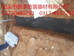 將調(diào)制好的糊狀降阻劑輕輕倒入(以防泥石、雜物混入降阻劑中)接地溝、孔內(nèi)直至全部無遺漏地包覆住接地極,并初測包覆厚度不小于40mm,鉆孔四壁充實,不足時要補充.