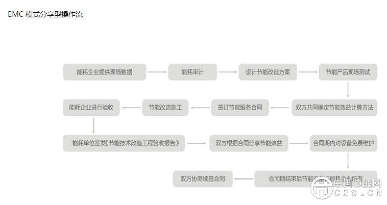 EMC 公司與愿意進(jìn)行節(jié)能改造的客戶簽訂節(jié)能服務(wù)合同, 向客戶提供能源審計(jì)、可行性研究、項(xiàng)目設(shè)計(jì)、項(xiàng)目融資、設(shè)備和材料采購、工程施工、人員培訓(xùn)、節(jié)能量檢測、改造系統(tǒng)的運(yùn)行、維護(hù)和管理等服務(wù)。在合同期節(jié)能服務(wù)公司與客戶企業(yè)分享節(jié)能效益, 并由此得到應(yīng)回收的投資和合理的利潤。合同結(jié)束后, 高效的設(shè)備和節(jié)能效益全部歸客戶企業(yè)所有。EMC 公司作為專業(yè)化的節(jié)能服務(wù)公司,通過帶資為企業(yè)實(shí)施節(jié)能改造項(xiàng)目, 向企業(yè)提供優(yōu)質(zhì)高效的節(jié)能服務(wù), 從而提高企業(yè)的能源利用效率, 降低企業(yè)成本, 客戶企業(yè)在沒有先期資金投入的情況下, 可獲得穩(wěn)定的節(jié)能收益和經(jīng)濟(jì)效益。