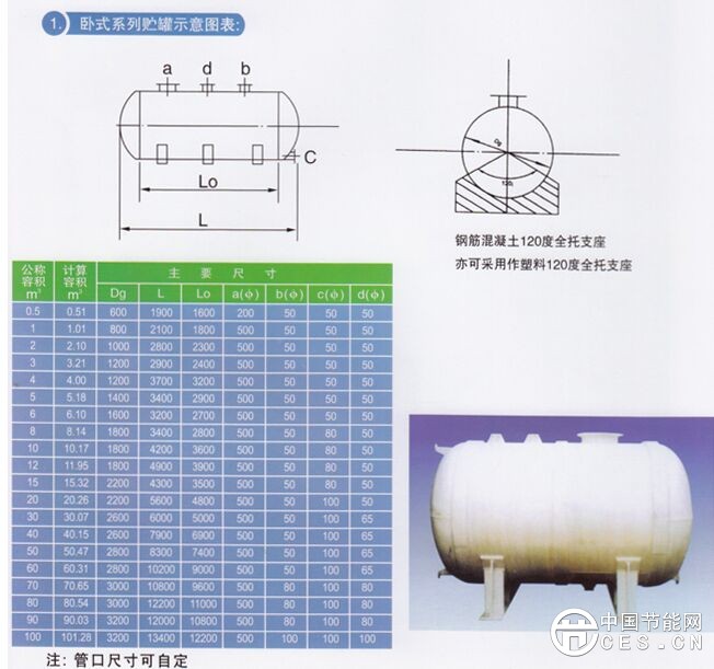 1.臥式系列貯罐示意圖表: